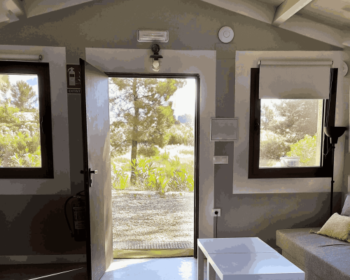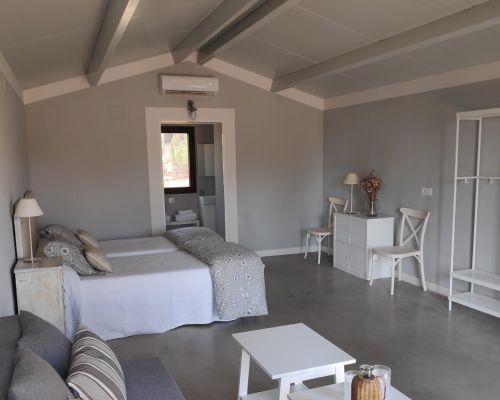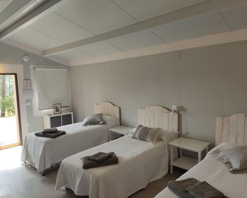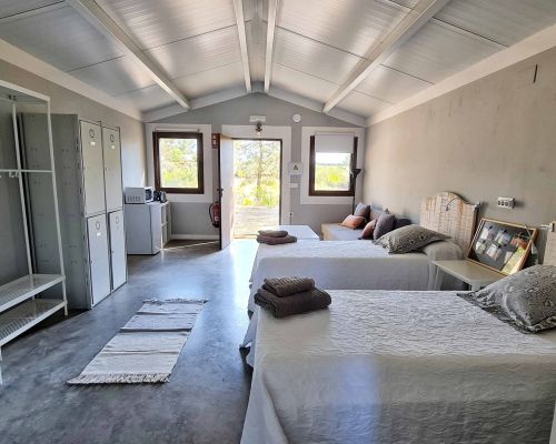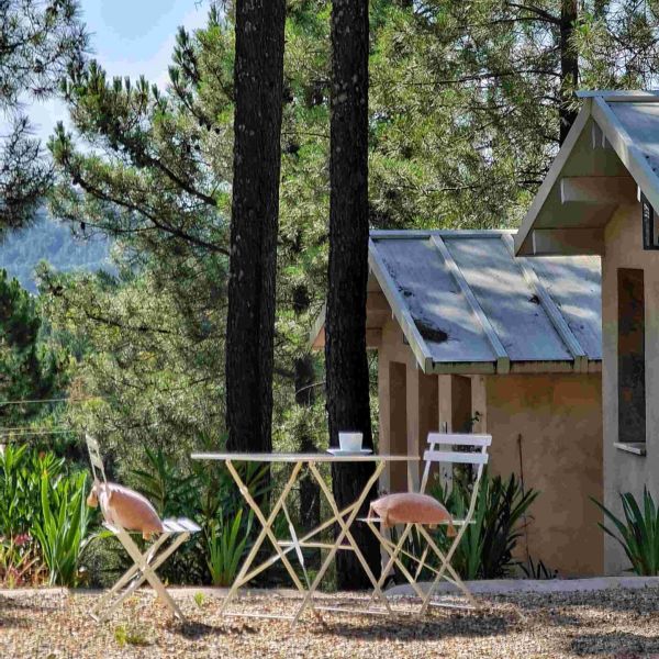A escasos metros de la Sala de la Hiedra, atravesando un maravilloso pinar, se encuentran las Casitas de Zaragate: alojamientos de 30 m² con baño privado, diseñados para adaptarse con flexibilidad a las necesidades de nuestros huéspedes.