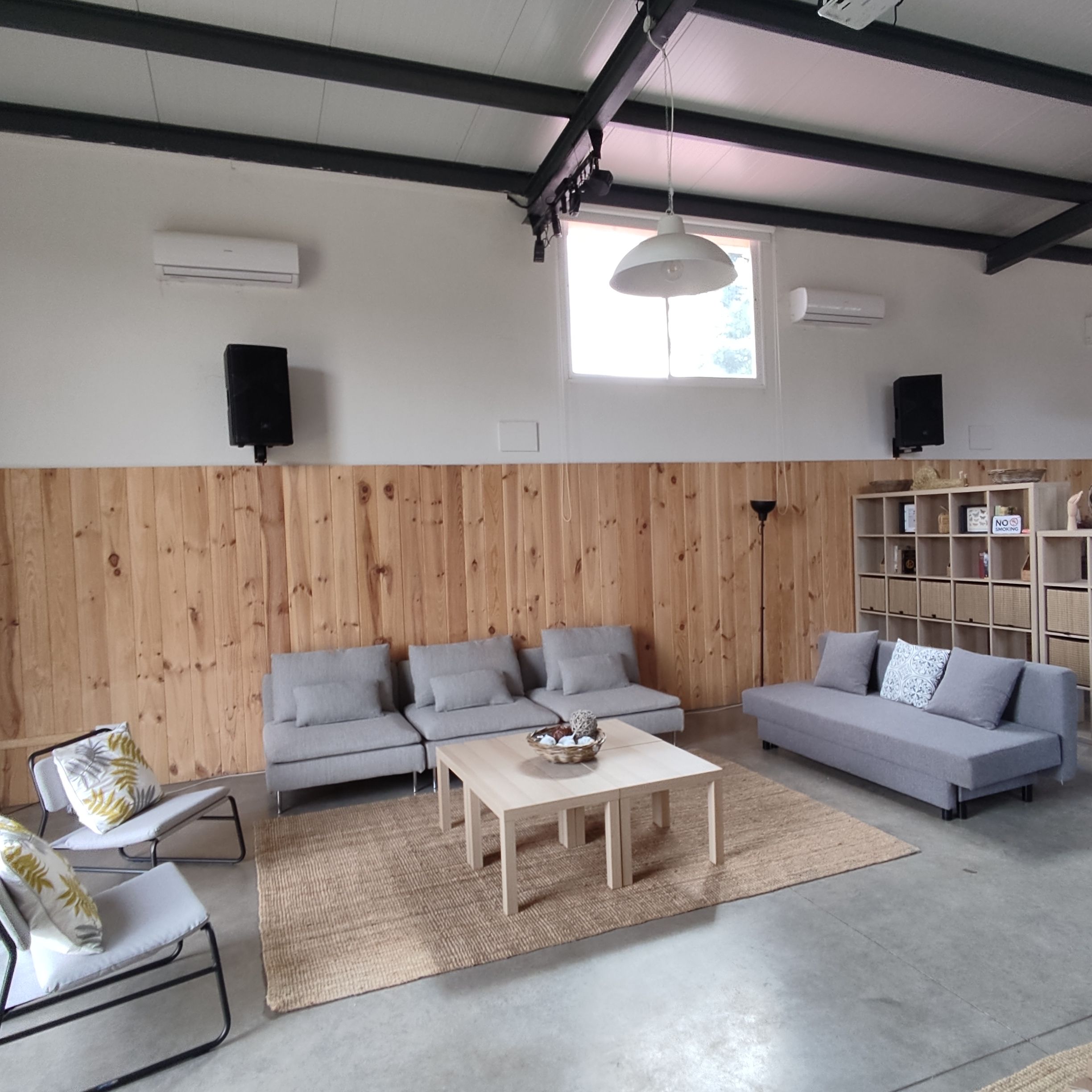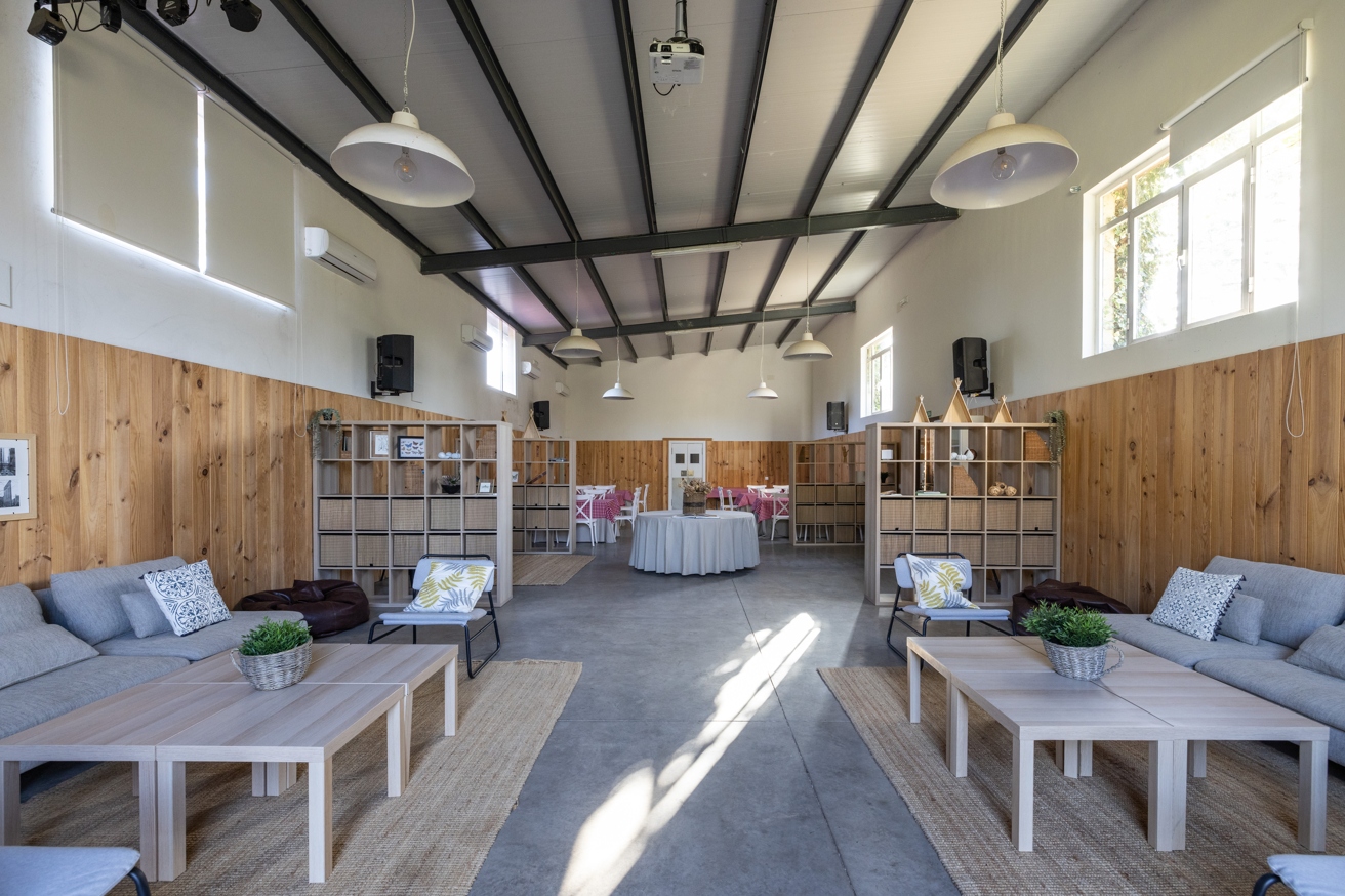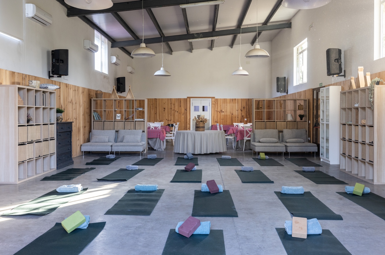 La versatilidad permite múltiples configuraciones según el tipo de evento: reuniones familiares y de trabajo, retiros de yoga, presentaciones y talleres creativos. Su diseño modular permite diferentes ambientes dentro del mismo espacio, combinando áreas de trabajo, descanso y socialización.